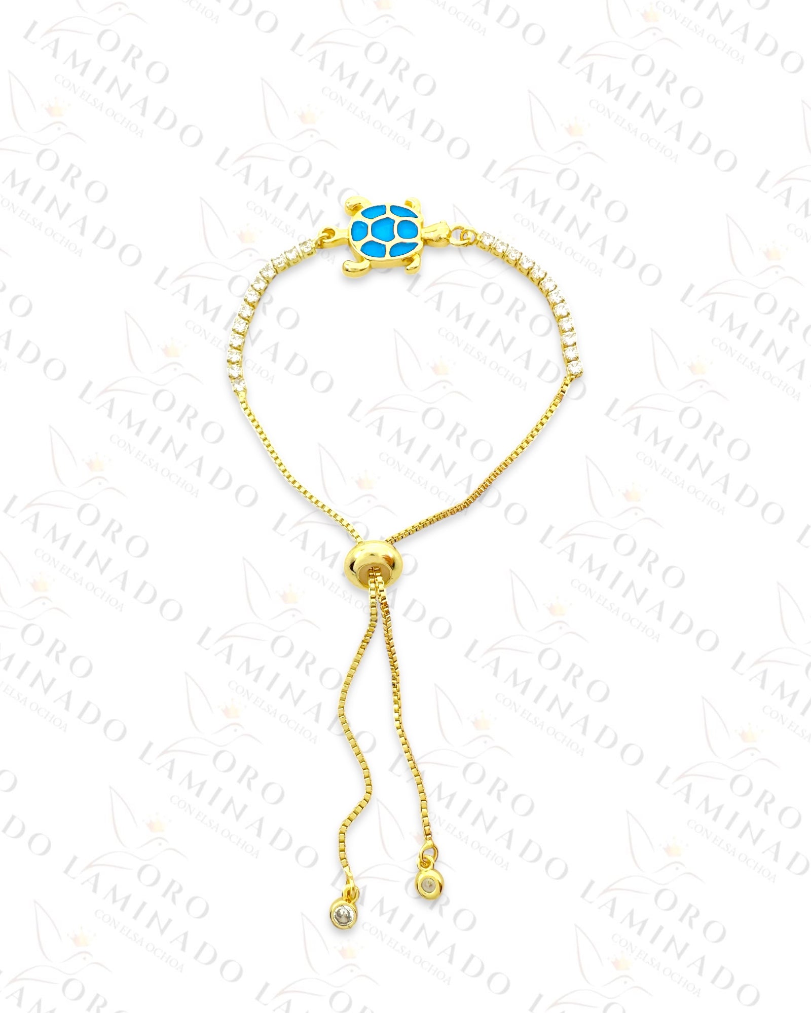 Beautiful Sea Turtle Adjustable Bracelet Covered in Delicate Clear Stones and with Sky Blue and Golden Accents for a Fresh and Clean Design. Gold Color, 14K Gold Filled