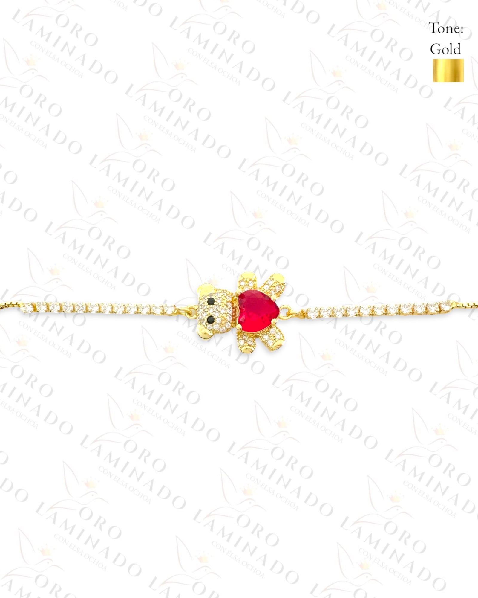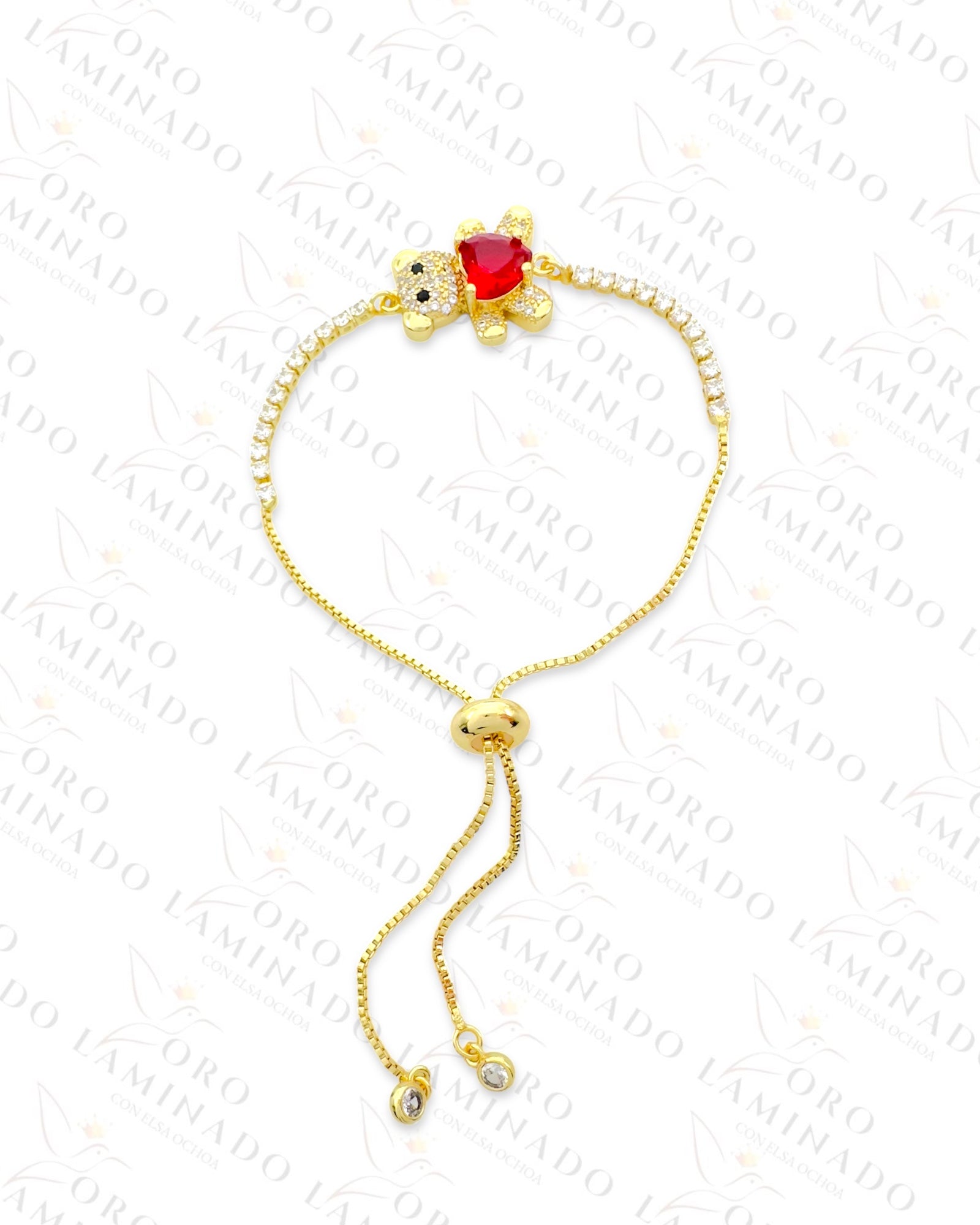 Gold Filled Red Heart Teddy Bear Adjustable Bracelet R181