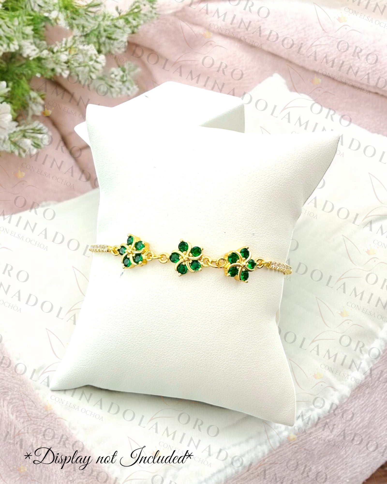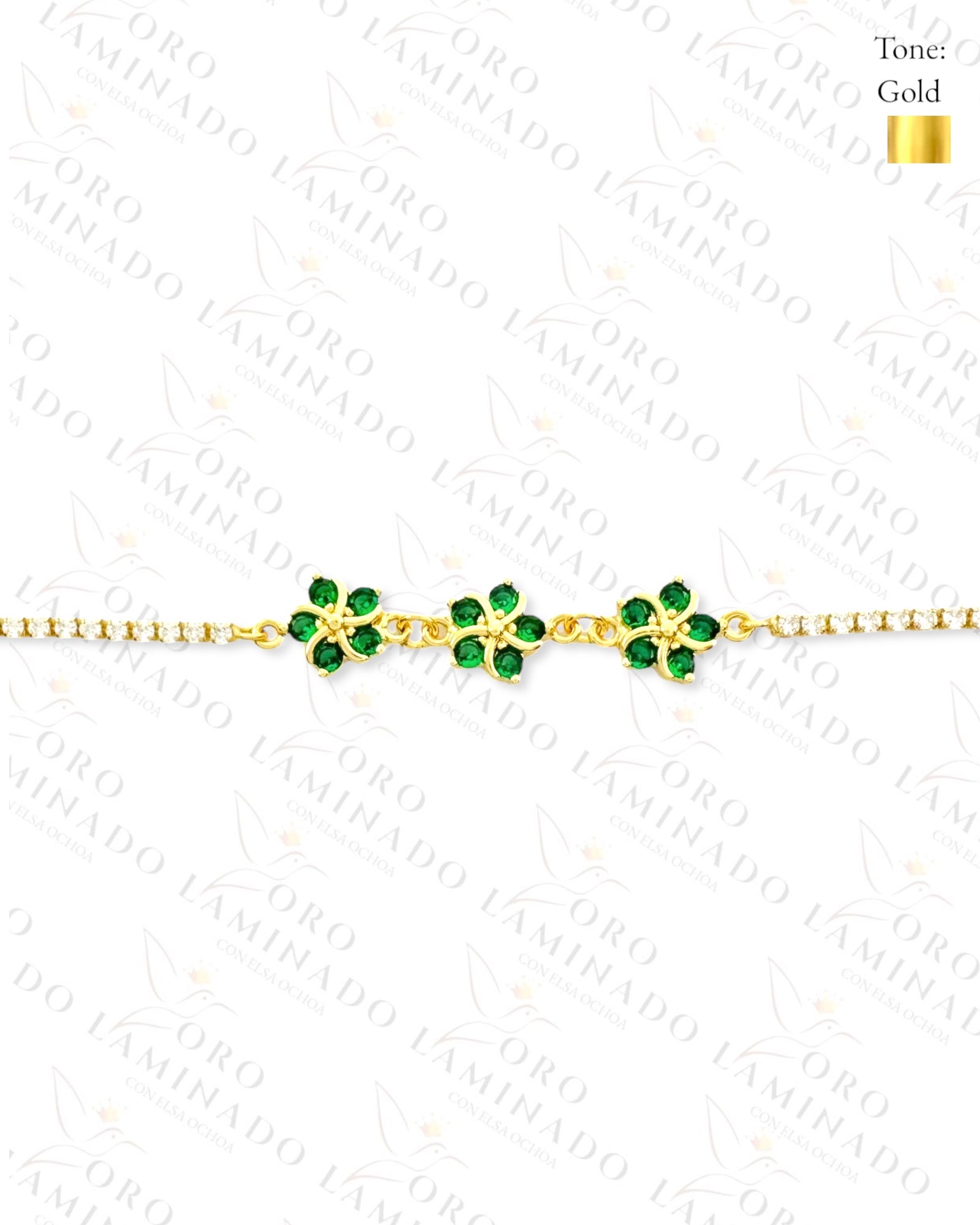 Gold Filled Green Triple Flower Adjustable Bracelet B67