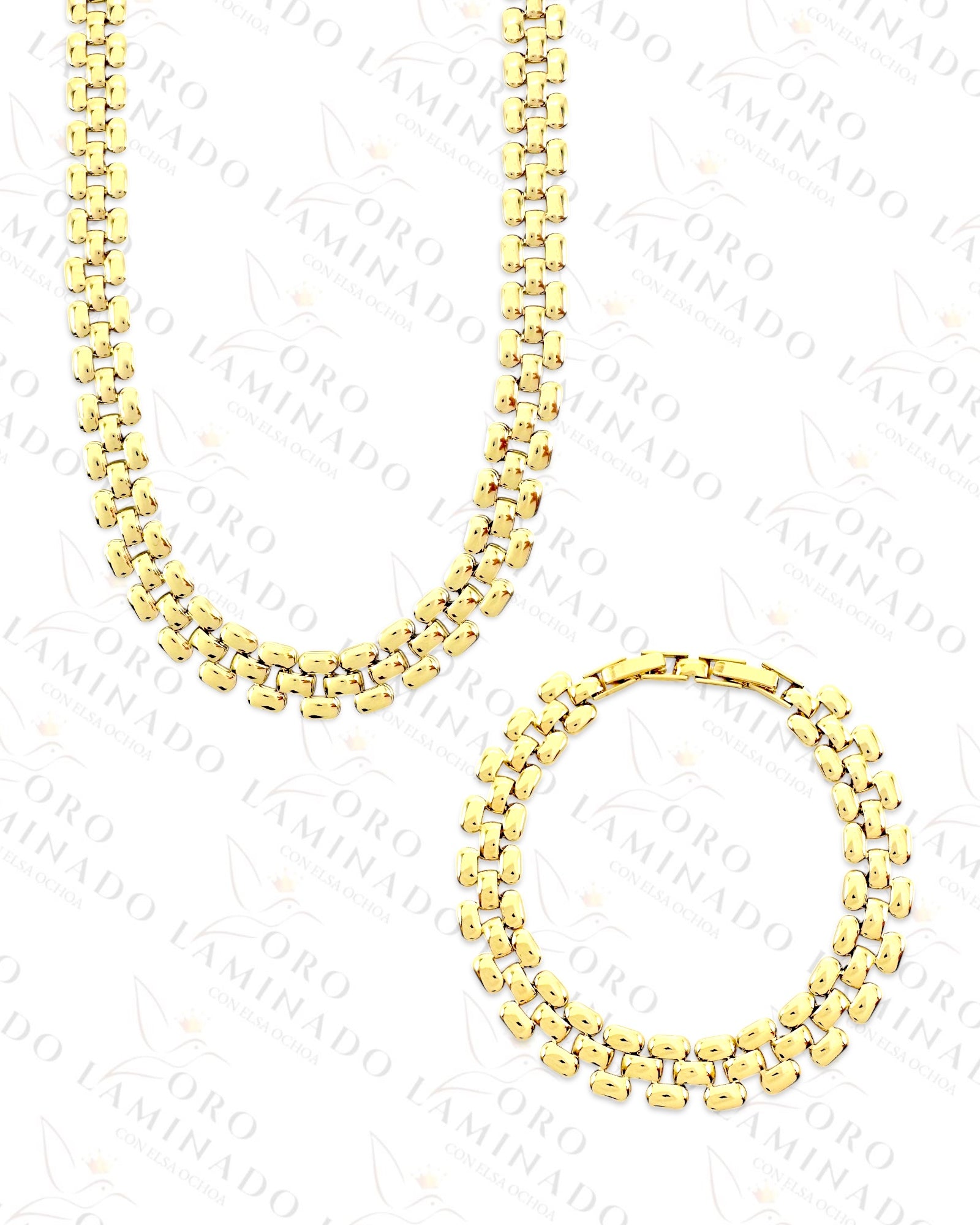 Beautiful High Quality Chain Set with a Distinctive Chain Design with No Stones. Matching Bracelet and Necklace for a Simple yet Elegant Design. Gold Color, 14k Gold Filled.