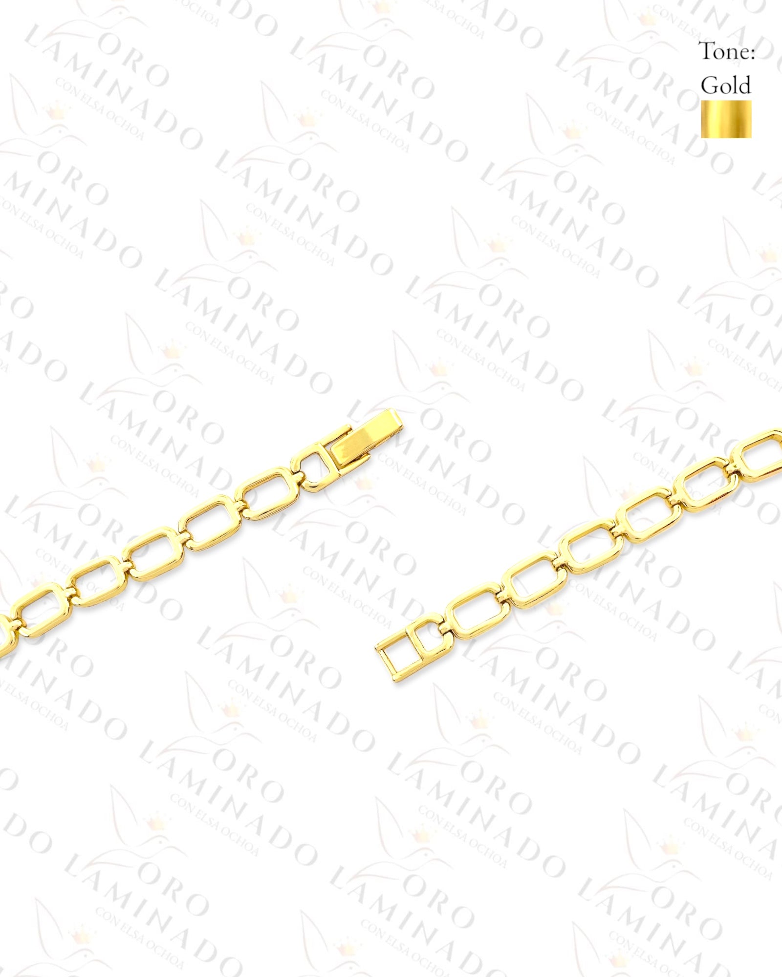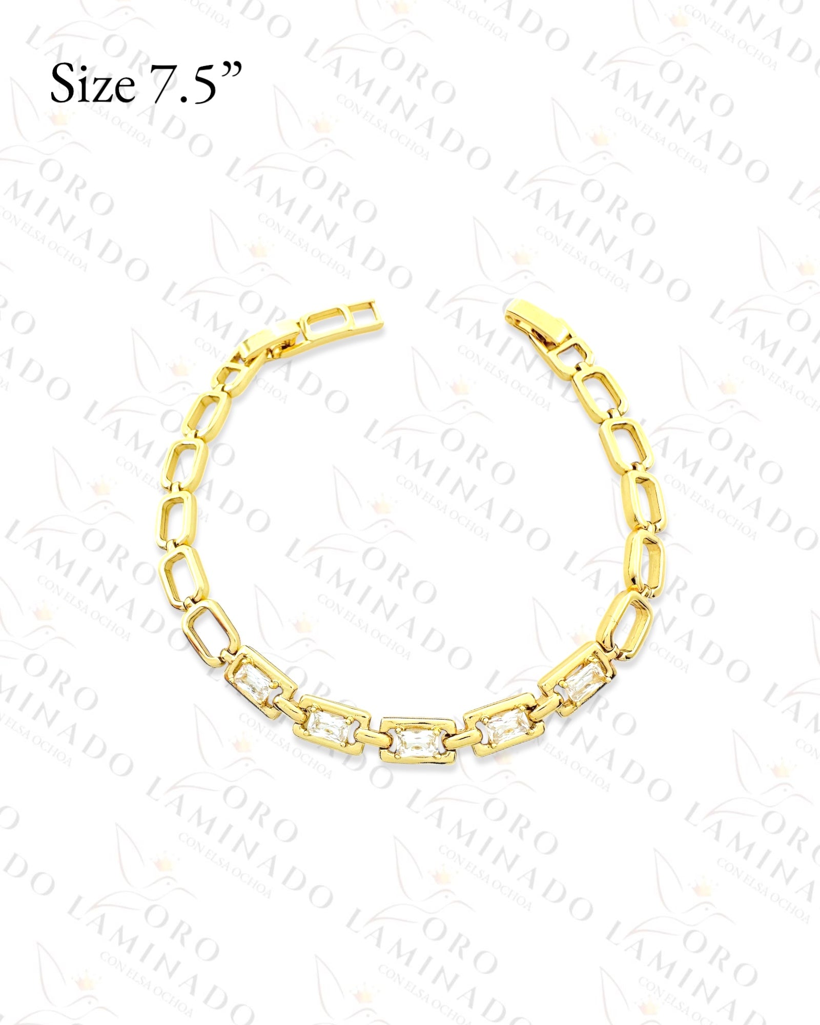 Beautiful High Quality Geometric Link Set Embellished by Delicate Clear Stones at the Center. Matching Bracelet and Necklace for an Abstract yet Timeless Design. Gold Color, 14k Gold Filled.