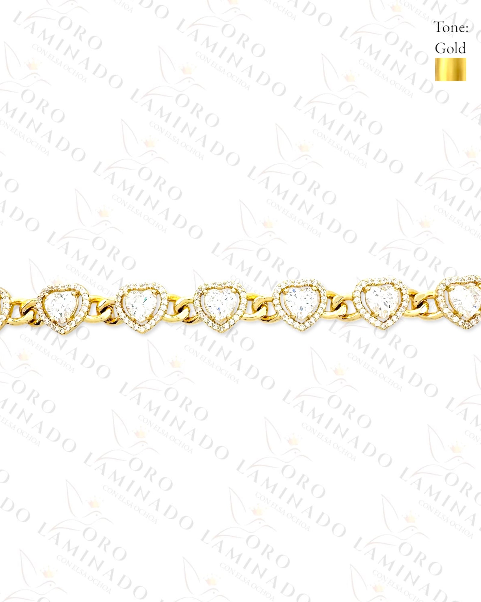 Beautiful High Quality Delicate Heart Chain Bracelet Covered in Clear Stones and Embellished by Hints of Gold Color for a Fancy Design. Gold Color, 14k Gold Filled.