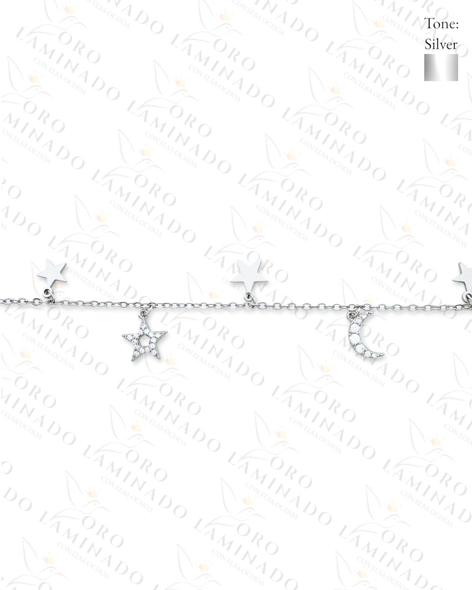 Beautiful High Quality Delicate Chain Bracelet with Moon and Stars Charms that are Covered in Delicate Clear Stones. Adjustable to a Smaller Size. Silver Color,14k Gold Filled.