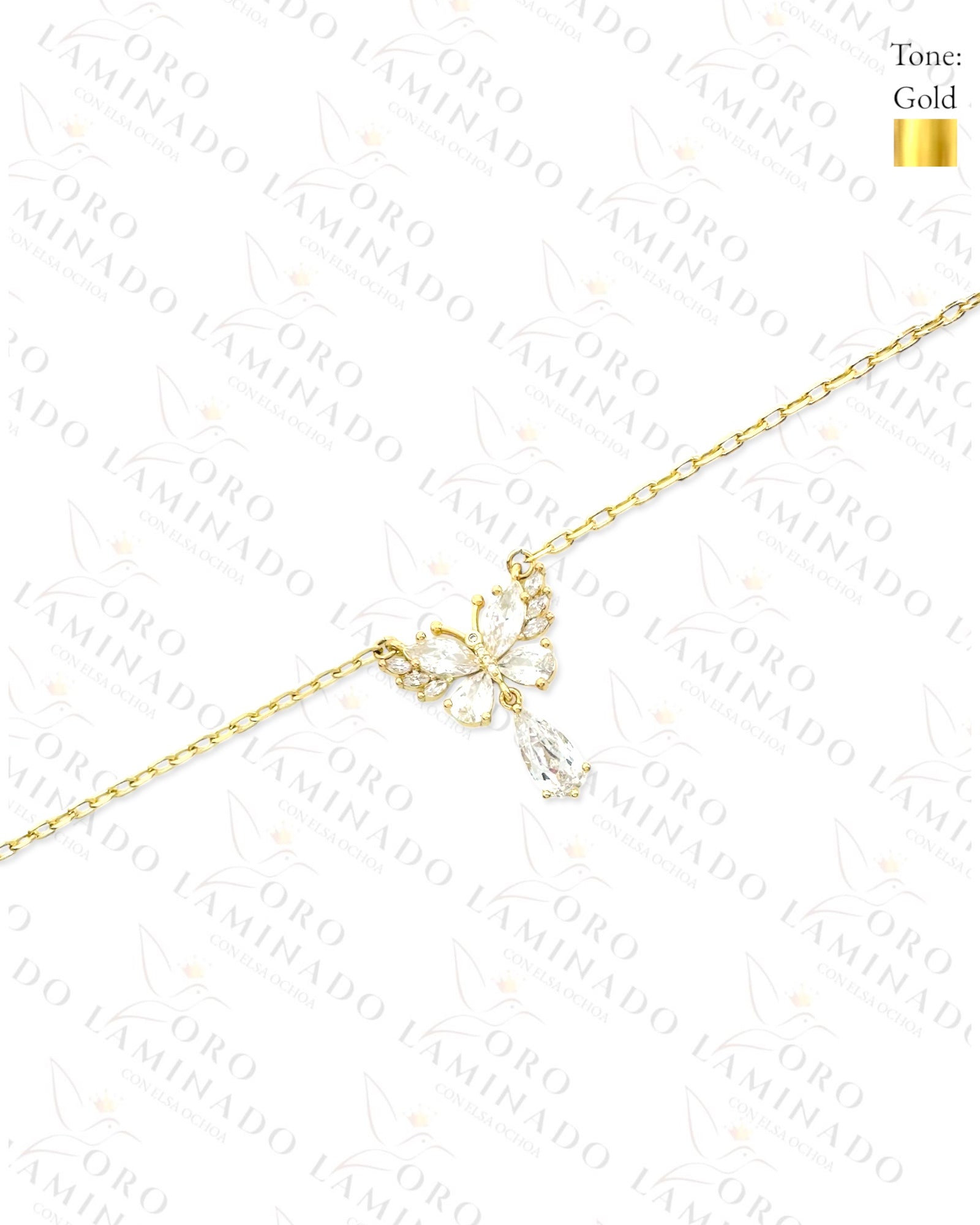 Beautiful High Quality Butterfly Set Covered in Delicate Clear Stones and Embellished with Subtle Golden for a Classic and Stunning Look. Gold Color, 14K Laminated Gold.