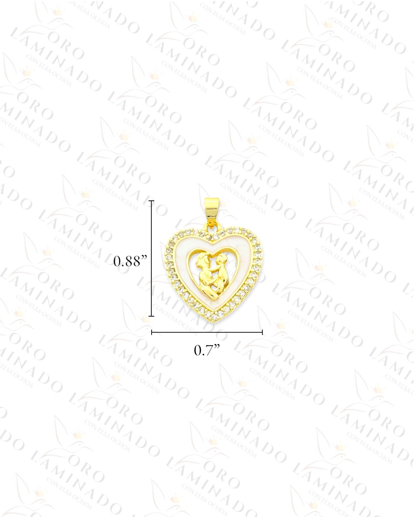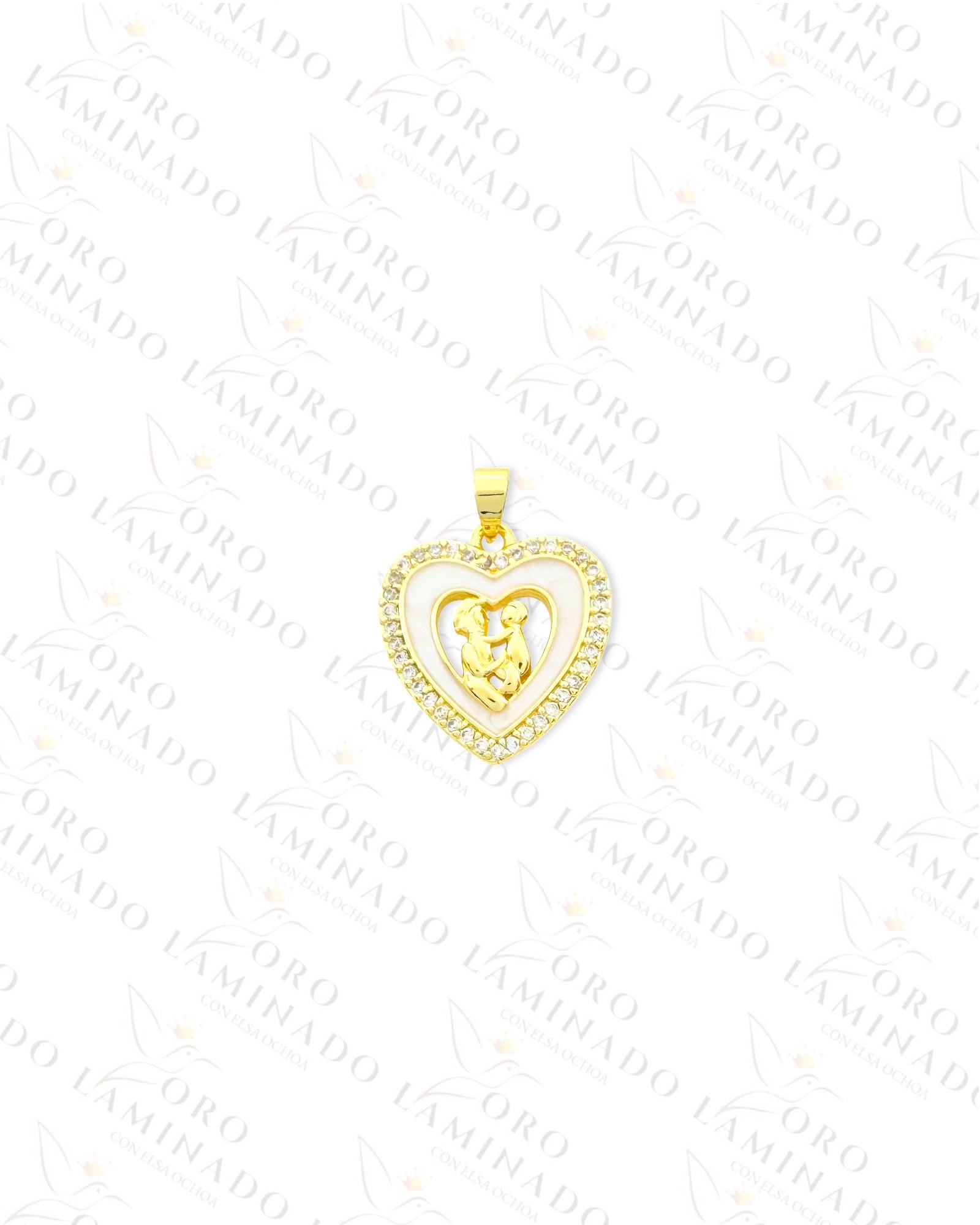 Beautiful Heart Pendant with the Silhouette of a Mom and Baby Embellished with Opalescent Stones and Clear Stones. A Pendant the Shows Mom’s Unbreakable Love. Gold Color, 14K Gold Filled
