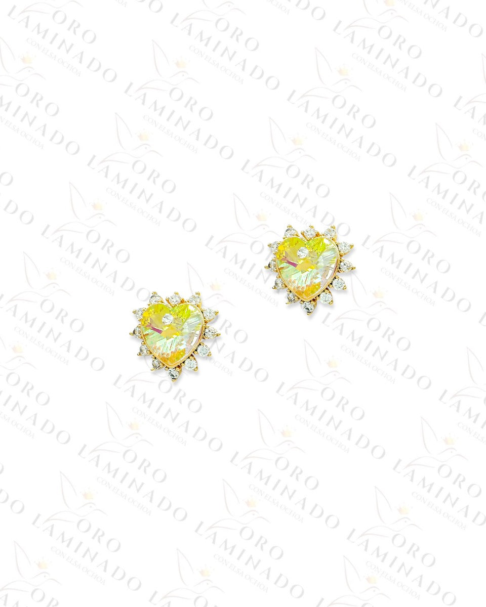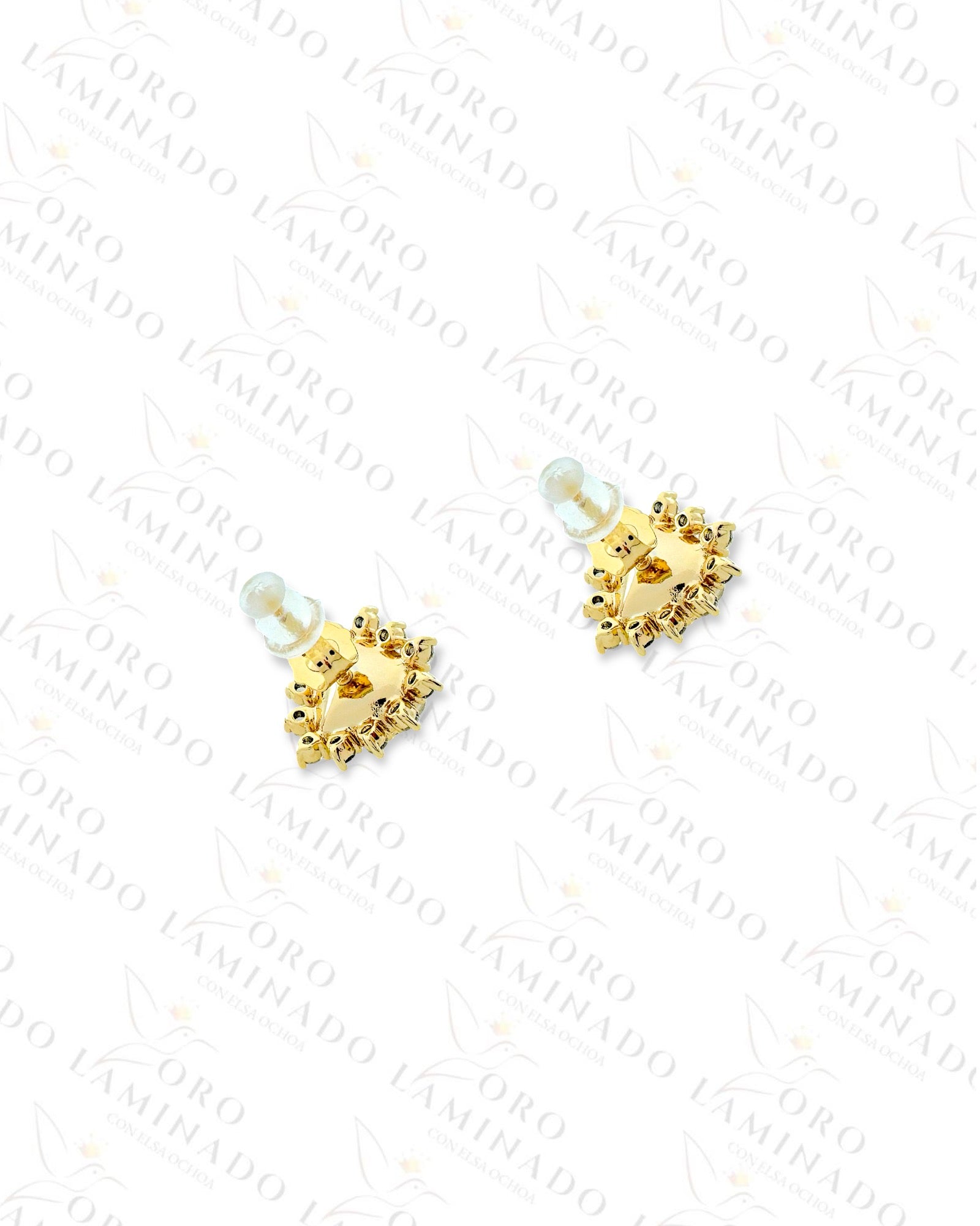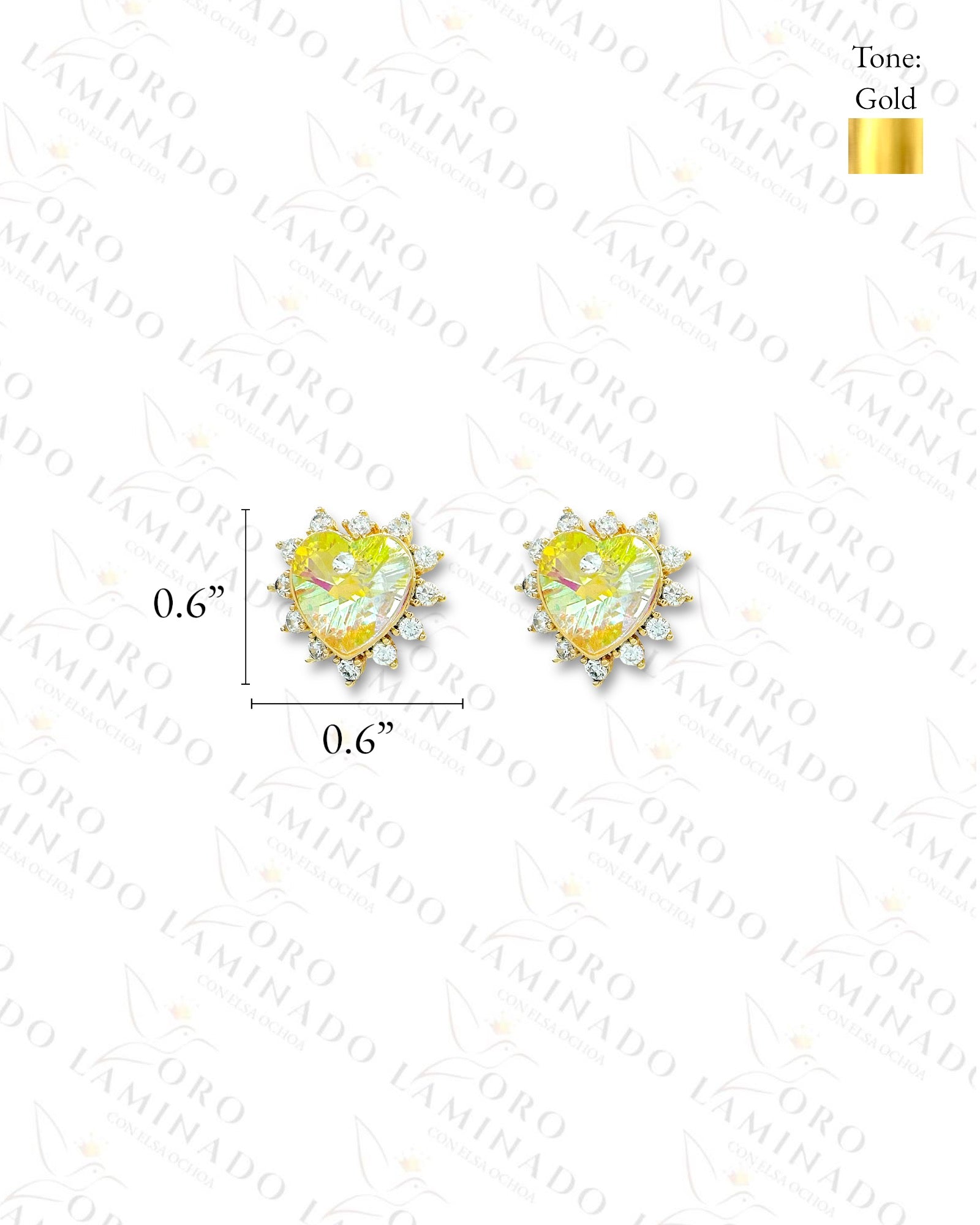 Beautiful High Quality Heart Earrings with a Litmus Heart Stone and Surrounded by Delicate Clear Stones. Gold Color, 14K Laminated Gold
