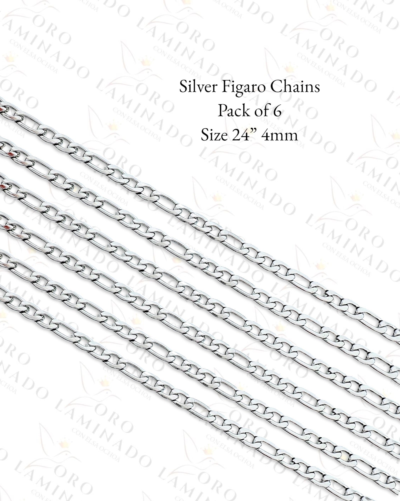 Silver Figaro Chains Pack of 6 Size 24” 4mm B320